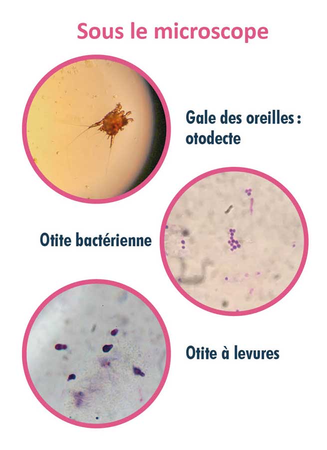 Les signes sont variables : une rougeur de la peau sur le pavillon de l’oreille ou à l’entrée du canal, des secouements de la tête, des couinements ou des démangeaisons avec grattage de l’oreille sont tous des symptômes possibles.